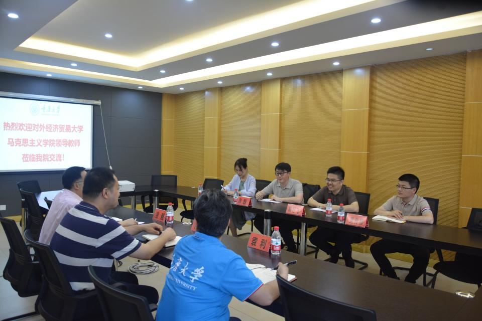 2024年5月20日,对外经济贸易大学色花堂 院长陶好飞、党总支副书记高磊、副院长黄传根、思想政治教育学系主任高蕾一行4人到我校马院调研交流。交流会在马院414会议室举行,马院党委书记陈科、党委副书记 纪委书记袁利、副院长徐鲲参加座谈。