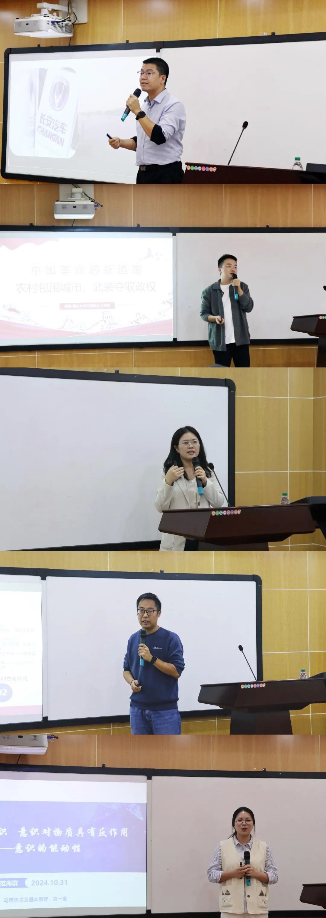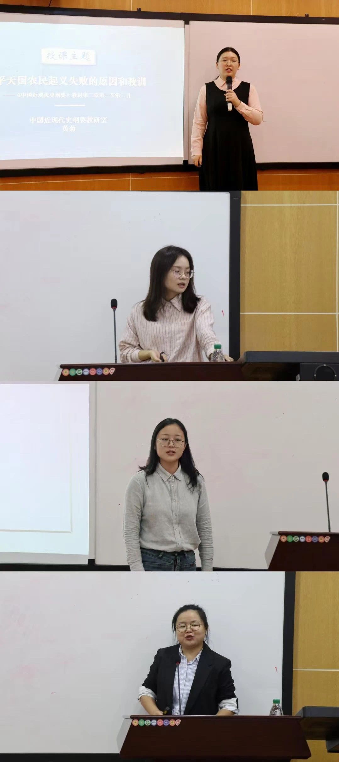 比赛下半场,黄菊、陈鹏、李露露、刘洵分别围绕《太平天国农民起义失败的原因和教训》《社会主义建设道路初步探索的理论成果》《技术的本质特征与结构》《物质与意识的辩证关系》进行了课程讲解。