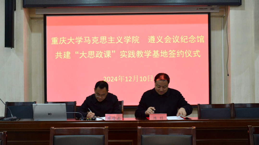 与遵义会议纪念馆双方签署了《共建“大思政课”实践教学基地合作协议》,并为“重庆大学‘大思政课’实践教学基地”揭牌。