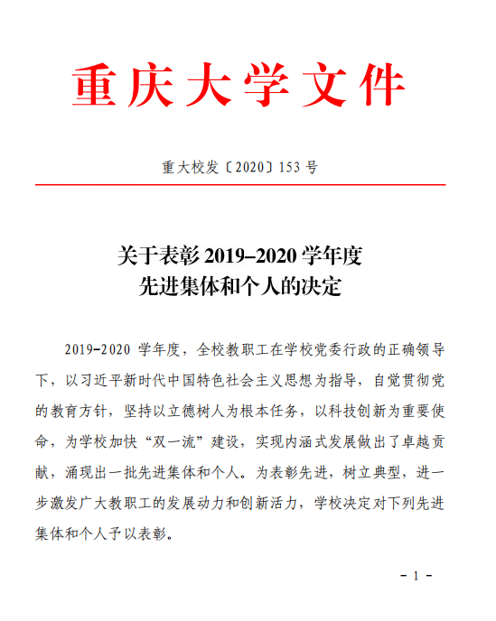 根据重庆大学《关于表彰2019-2020学年度先进集体和个人的决定》文件内容,色花堂