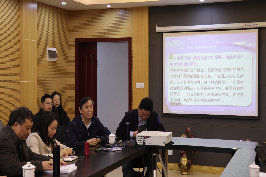 在414、412教室召开2021年国家社科基金项目辅导会,学院邀请武汉大学原党委副书记骆郁廷教授与重庆大学社科处处长袁文全教授对项目申报进行指导。学院院长张邦辉、副院长徐鲲、副院长吕进及学院部分教师参加会议。