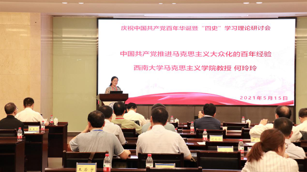 院长张邦辉主持。重庆市委宣传部副部长曾维伦、重庆市社会科学界联合会党组书记李保海、重庆大学党委副书记王旭在开幕式上致辞。王旭指出“四史”学习理论研讨有利于认真学习、深刻领会党的百年历史,要深入挖掘重庆独特的红色资源,结合重庆大学的历史积淀为“四史”学习提供重要素材、为马克思主义学科建设做出重要贡献。