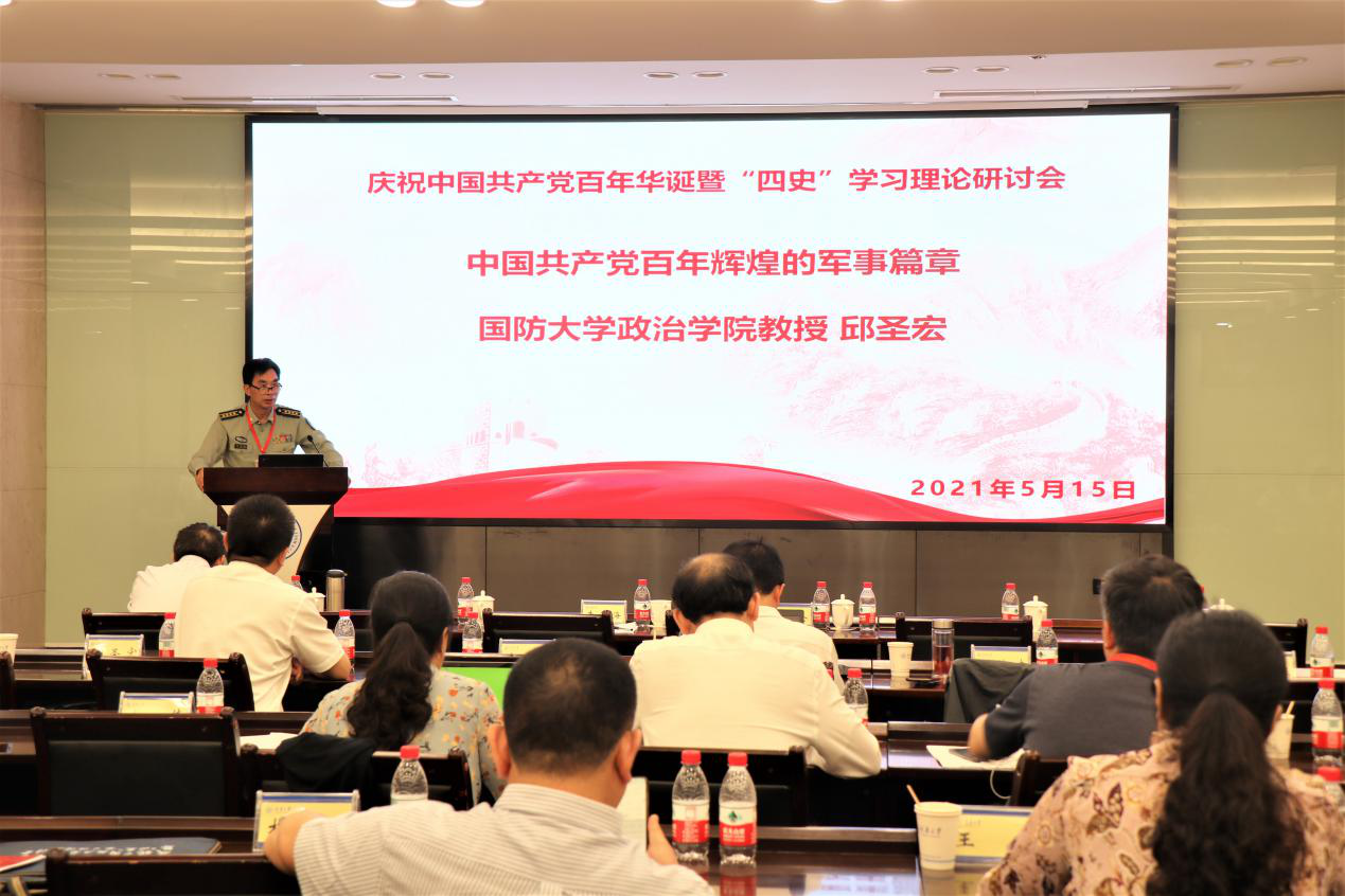 教授王洪树、国防大学政治学院教授邱圣宏依次进行交流。其中何虎生教授讲清楚习近平总书记关于党史学习教育的重要论述、讲清楚党史学习教育的主要方面、讲清楚党史学习教育的主要方法三部分进行了重点阐述。