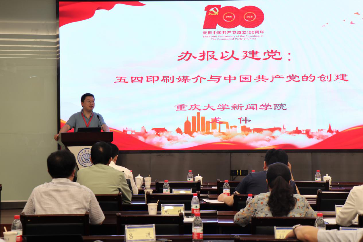 教授何玲玲、重庆大学新闻学院教授龙伟依次进行交流分享。其中重庆大学新闻学院教授龙伟讲到:近代以大众报刊为代表的印刷媒体的兴起,为中共的成立准备了条件,中共建党受到晚清以来“开会必先办报”的政治传统影响,同时也汲取了列宁主义“办报-建党”的成功经验,中共建党史显示,近代的媒介化社会是中共成立的重要前提,中共的成立是列宁主义与中国实践相结合的结果。