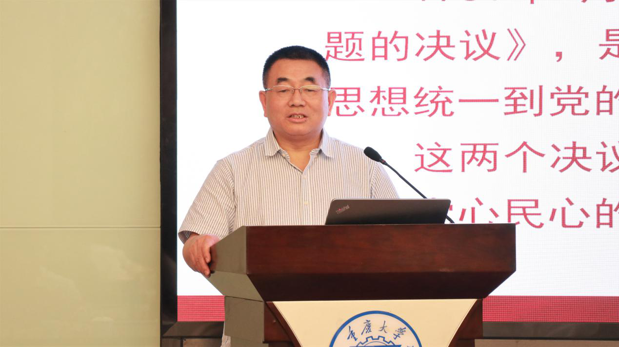 副教授卢旭东依次进行发言。其中卢旭东副教授从根植自我革命的自觉性、肩负继往开来的使命性、厚植执政为民的人民性、树立正确党史观的导向性四个方面阐述了习近平总书记关于党史学习重要论述的逻辑理路。