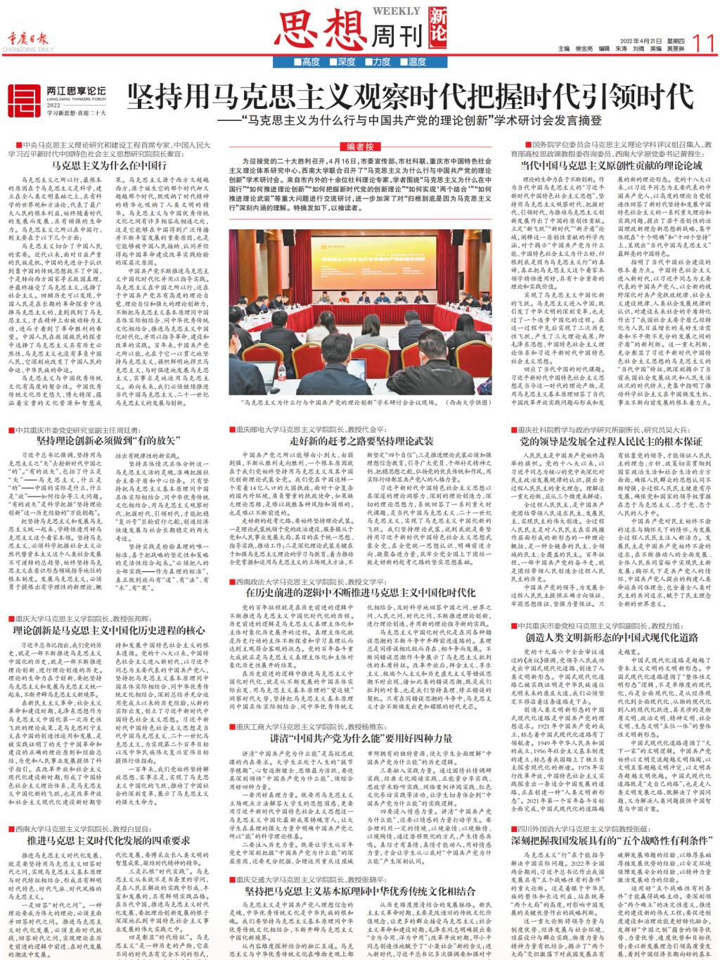院长张邦辉参加研讨会并作主题发言,4月21日出版的《重庆日报》刊登了张邦辉院长的主题发言。