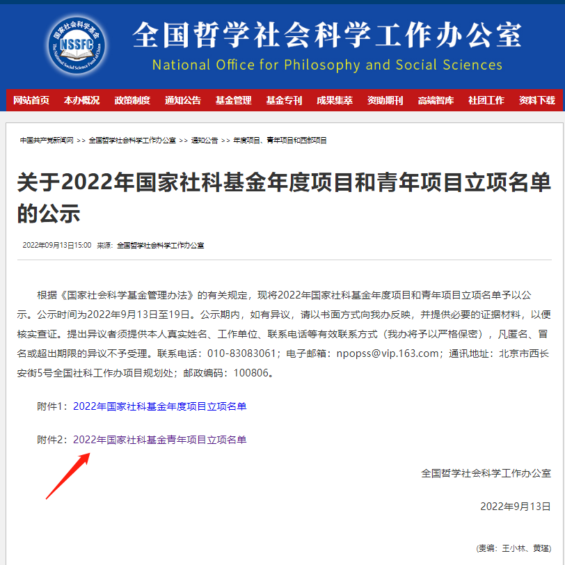 2022年9月13日下午,全国哲学社会科学工作办公室公示了2022年国家社科基金年度项目和青年项目立项名单。色花堂 陈娜、上官小红两位老师获国家社科基金青年项目立项。立项信息如下: