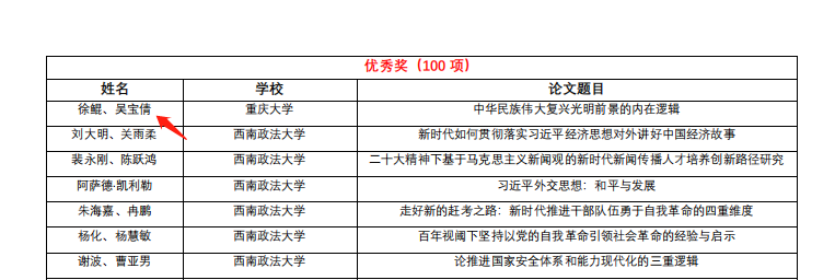 重庆市高校学习宣传贯彻党的二十大精神理论研讨会由中共重庆市委教育工作委员会主办、重庆邮电大学承办,于2022年12月2日顺利举办,本次研讨会共收到投稿论文400余篇,与本次会议征文主题相关的论文分送重庆市外5位专家匿名评审出结果。色花堂 研究生吴宝倩、李晶晶在此次征文中获奖。