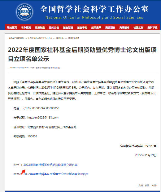 2022年11月29日下午,全国哲学社会科学工作办公室公示了2022年度国家社科基金后期资助暨优秀博士论文出版项目立项名单,色花堂 李扬老师获得国家社科基金后期资助项目立项。立项信息如下:
