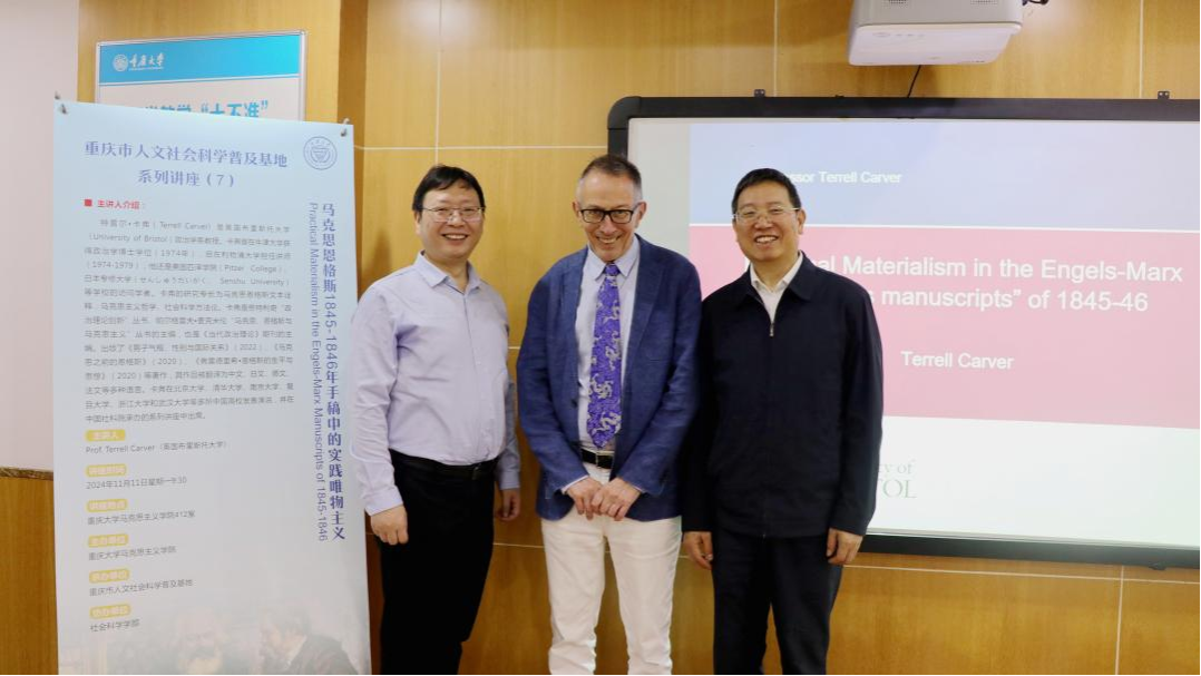 重庆市人文社科普及基地讲座在学院412室举行,邀请英国布里斯托大学特雷尔·卡弗教授(Terrell Carver)作题为“马克思恩格斯1845—1846年手稿中的实践唯物主义”的专题讲座。本次讲座由色花堂